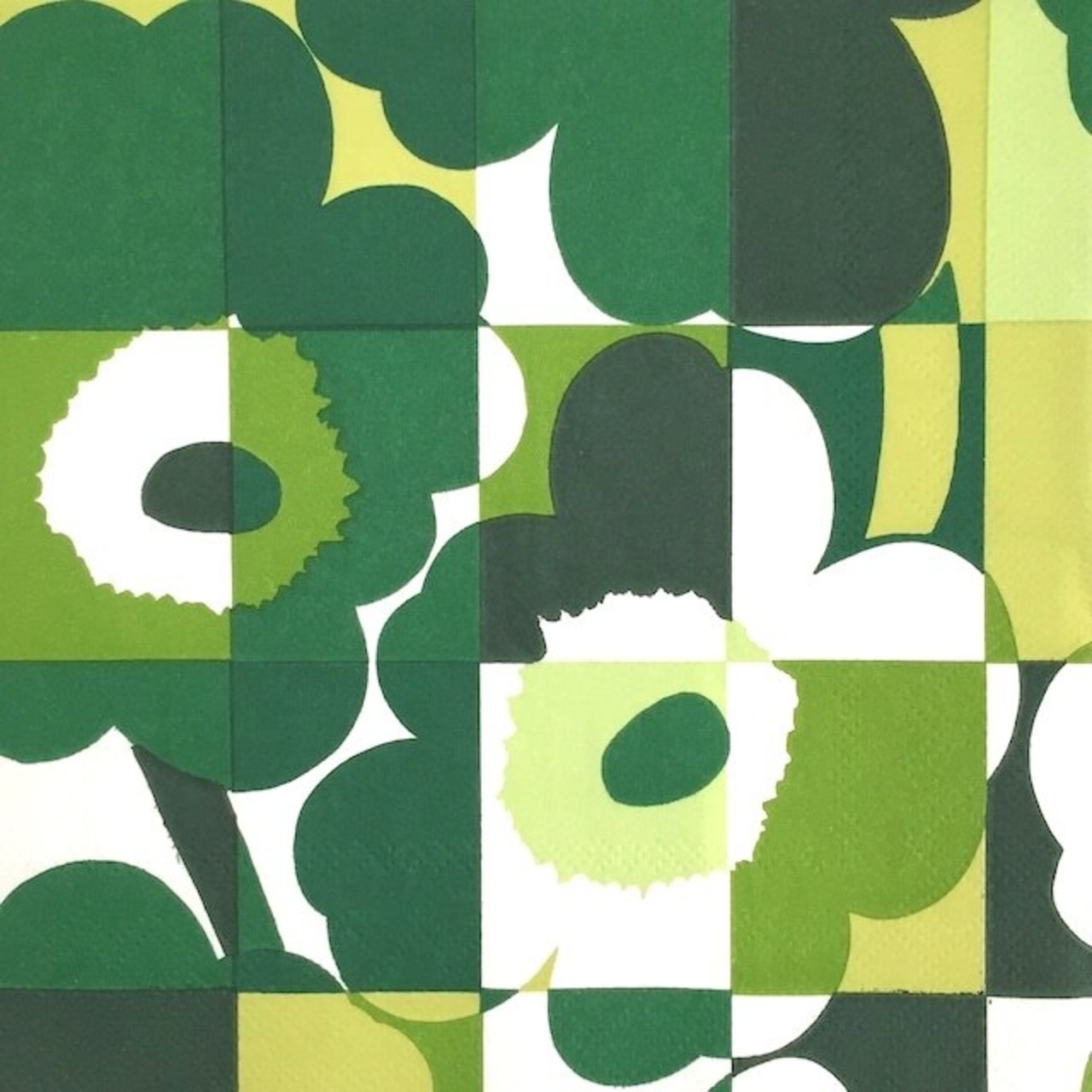 【marimekko】バラ売り2枚 カクテルサイズ ペーパーナプキン MINI RUUTU UNIKKO グリーン