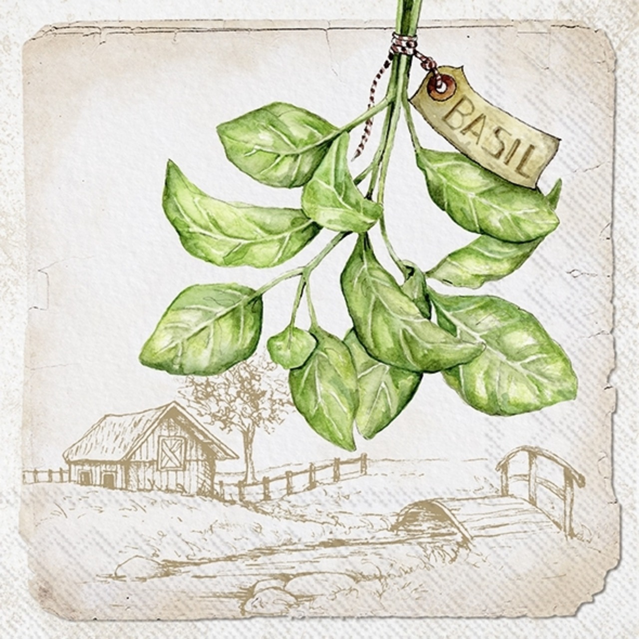 【IHR】バラ売り2枚 ランチサイズ ペーパーナプキン BASIL クリーム