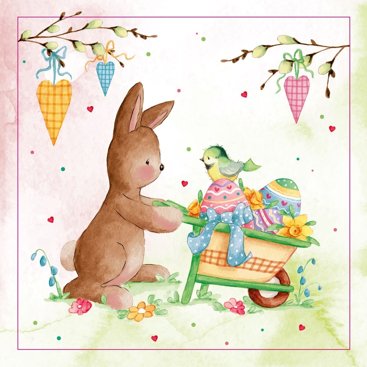 【Nouveau】バラ売り2枚 ランチサイズ ペーパーナプキン Bunny&Birdie パステル