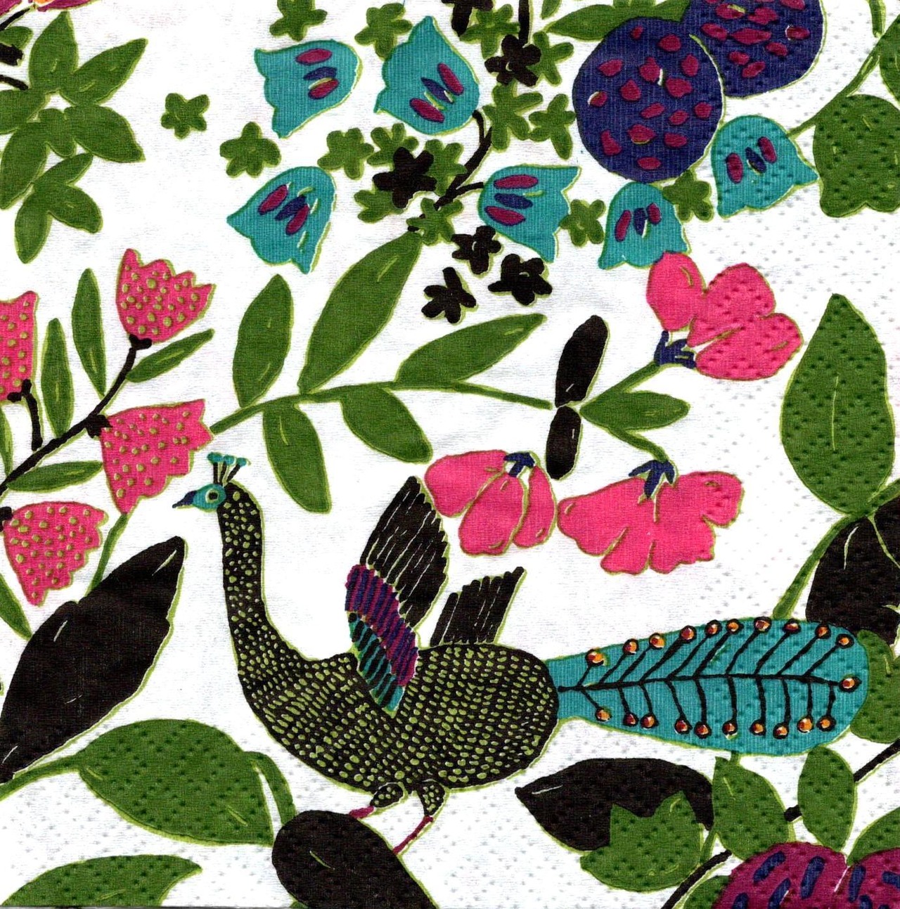 北欧【Finlayson】バラ売り1枚 ランチサイズ ペーパーナプキン RIIKINKUKKO グリーン×ピンク