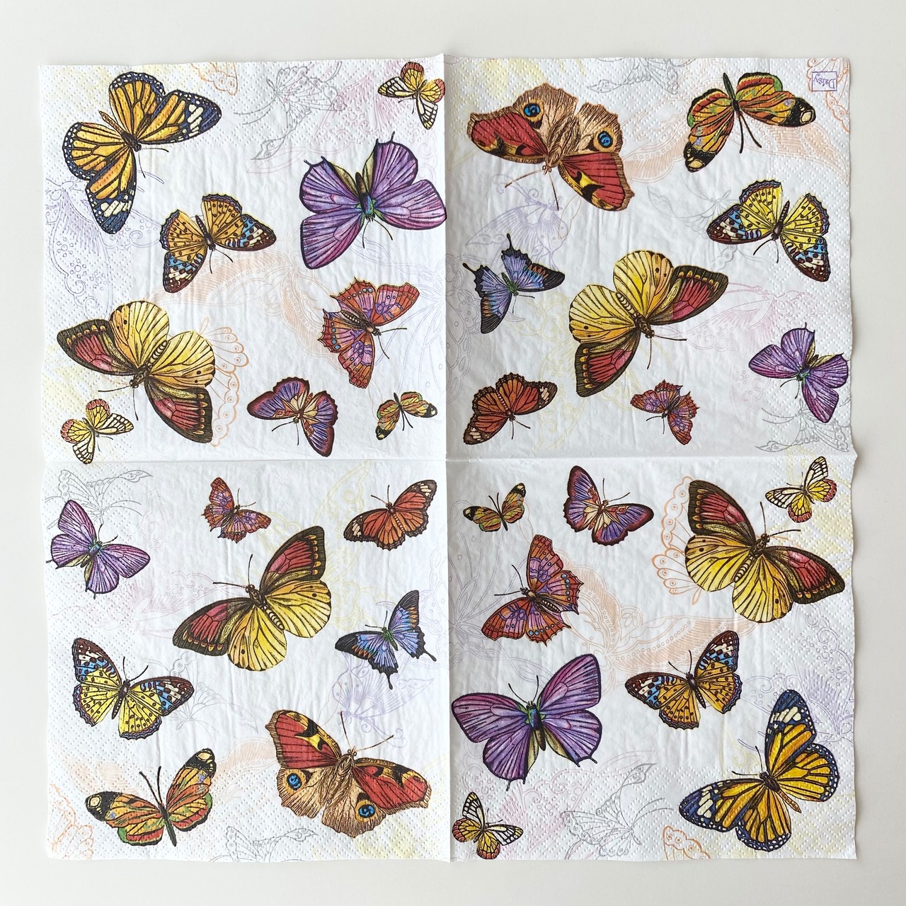 【Daisy】バラ売り2枚 ランチサイズ ペーパーナプキン Butterfly Wallpaper ホワイト