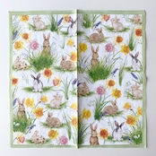 【Caspari】バラ売り1枚 ランチサイズ ペーパーナプキン Bunnies and Daffodils ホワイト