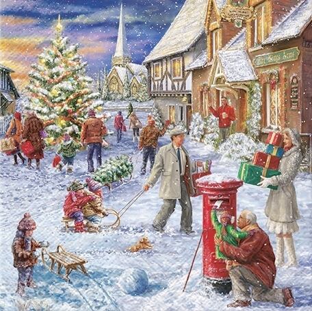 【PAW】バラ売り2枚 ランチサイズ ペーパーナプキン Christmas Postmail ダークブルー
