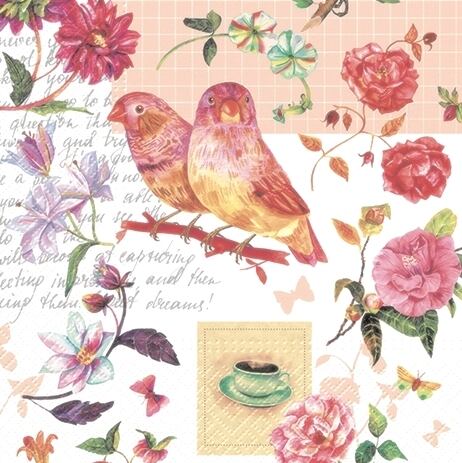 【PAW】バラ売り2枚 ランチサイズ ペーパーナプキン Floral Poetry ホワイトxコーラル