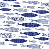 【ti-flair】バラ売り2枚 ランチサイズ ペーパーナプキン Shoal of Blue Fish ホワイト