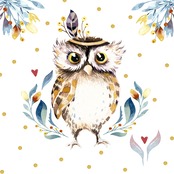 【Paper+Design】バラ売り2枚 ランチサイズ ペーパーナプキン Flower Owl ホワイト