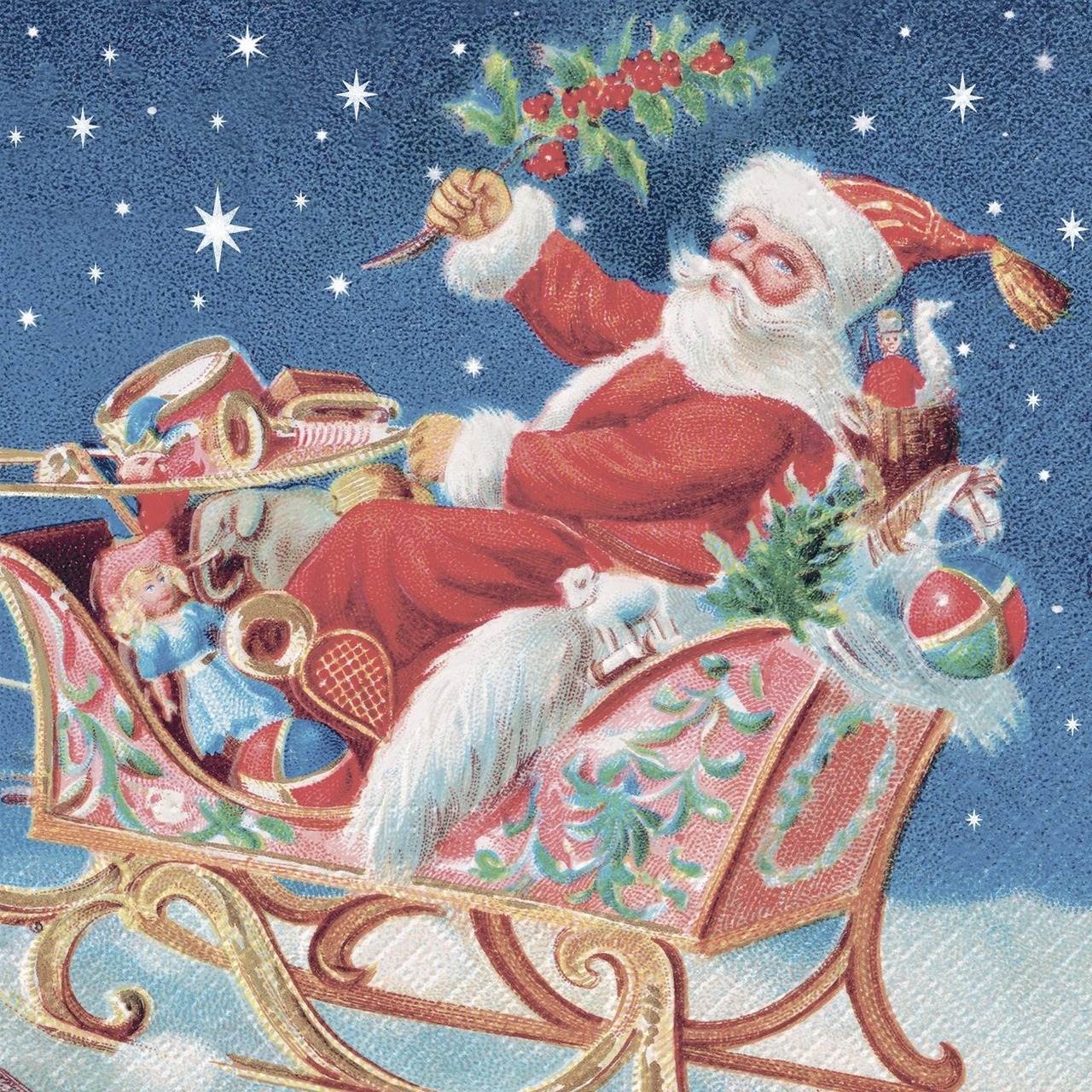 【TETE a TETE】バラ売り2枚 ランチサイズ ペーパーナプキン Santa Claus on a sleigh レッドxダークブルー
