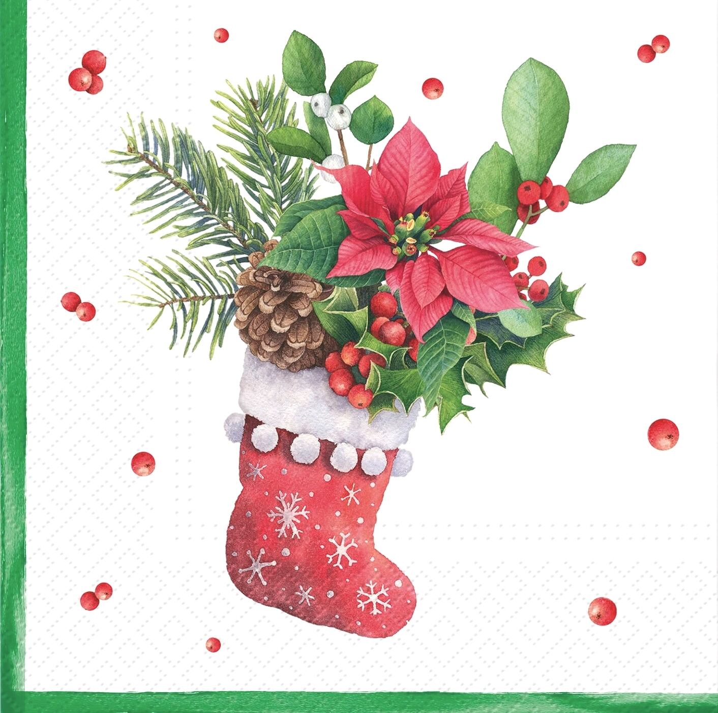2023秋冬【PAW】バラ売り2枚 ランチサイズ ペーパーナプキン SOCK WITH POINSETTIA ホワイト