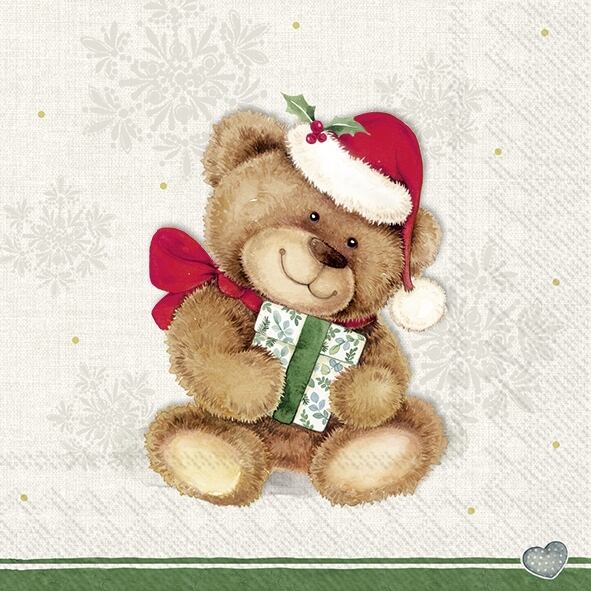 【IHR】バラ売り2枚 ランチサイズ ペーパーナプキン CHRISTMAS TEDDY クリーム