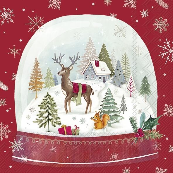 2023秋冬【IHR】バラ売り2枚 ランチサイズ ペーパーナプキン SNOW GLOBE レッド