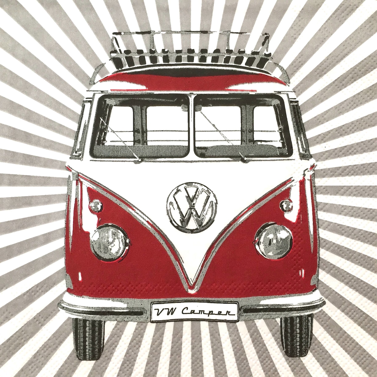 【Volkswagen】バラ売り2枚 ランチサイズ ペーパーナプキン VW COLLECTION Samba Stripes ホワイト×グレー