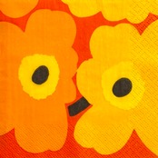 【marimekko】バラ売り1枚 カクテルサイズ ペーパーナプキン UNIKKO オレンジ×オレンジ フィンランド製