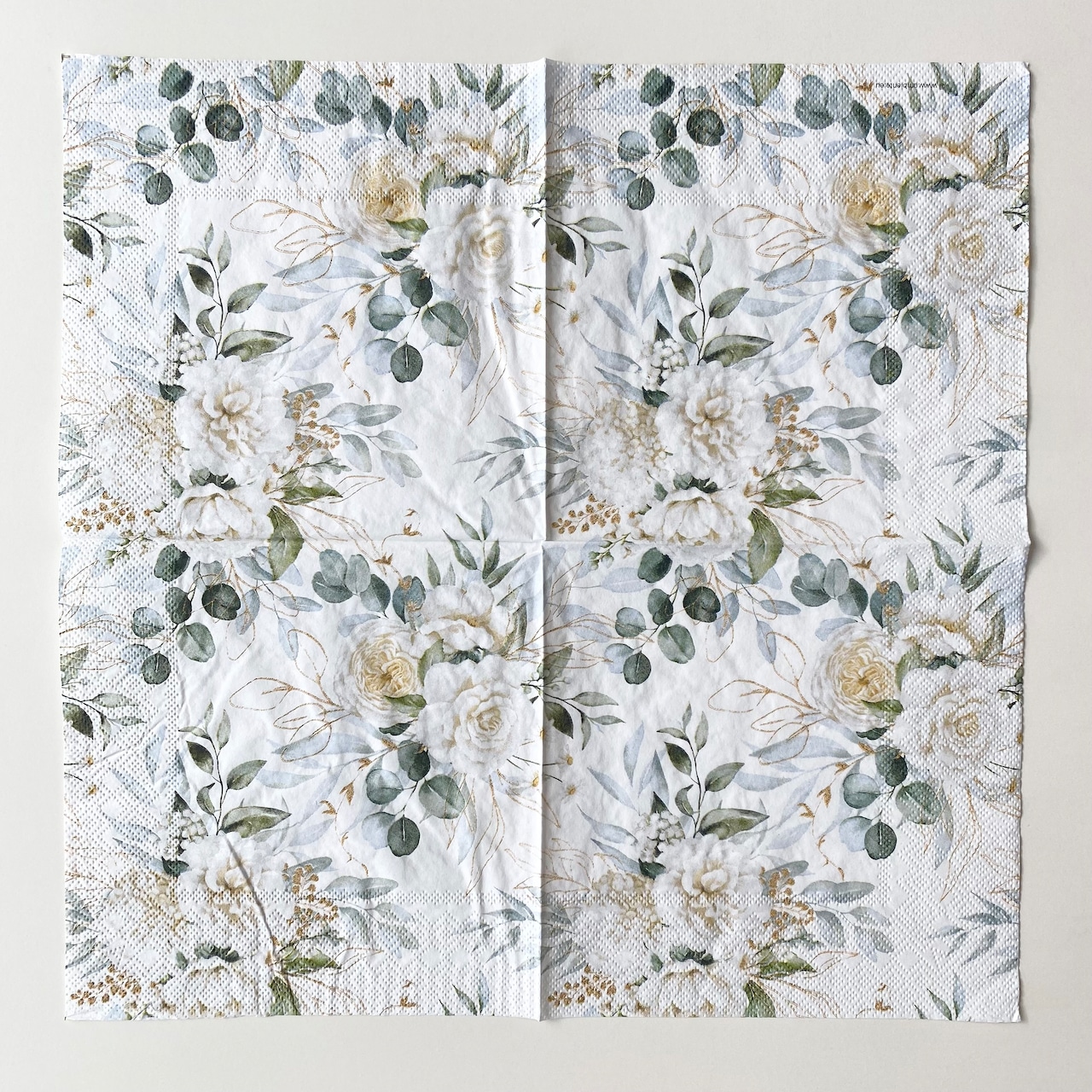 2024春夏【Ambiente】バラ売り2枚 ランチサイズ ペーパーナプキン Eucalyptus and roses ホワイト