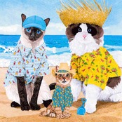 2024春夏【Paperproducts Design】バラ売り2枚 ランチサイズ ペーパーナプキン Cats Beach Party ブルー