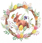 2024春夏【TETE a TETE】バラ売り2枚 ランチサイズ ペーパーナプキン Bunny in a wreath ホワイト