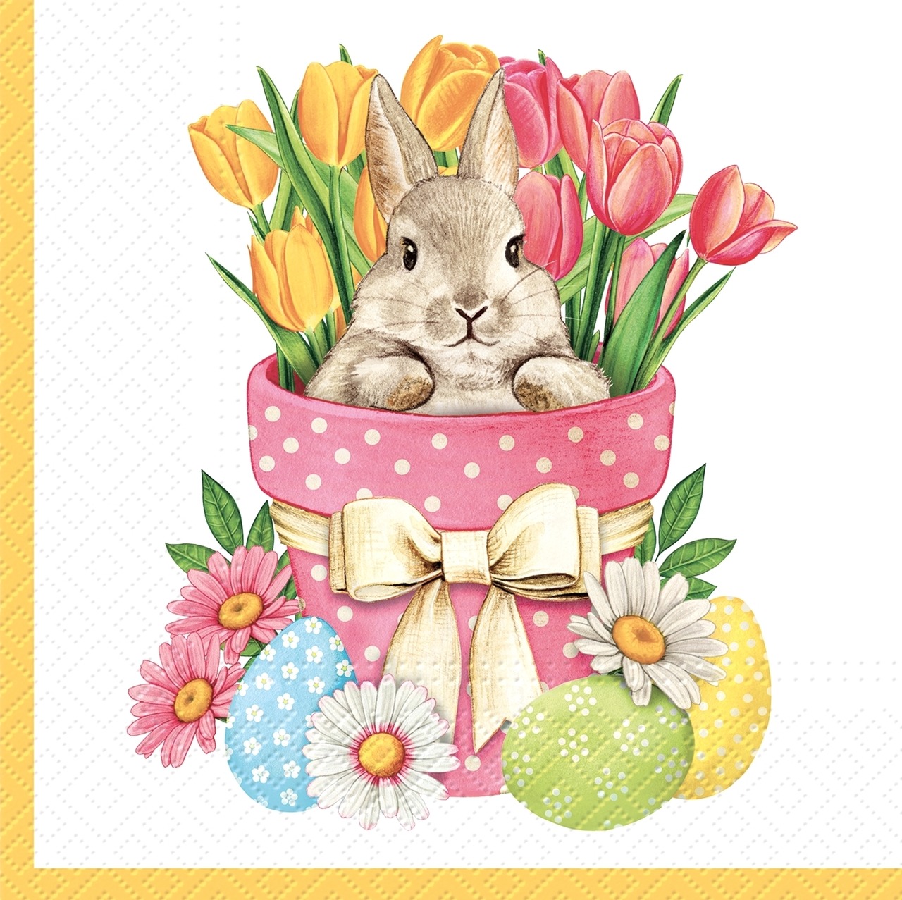 【PAW】バラ売り2枚 ランチサイズ ペーパーナプキン Flower Bunny ホワイト
