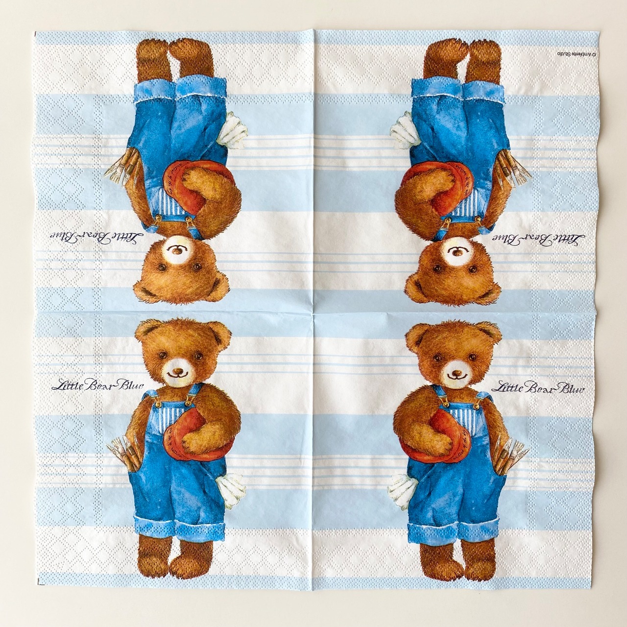 【Ambiente】バラ売り2枚 ランチサイズ ペーパーナプキン LITTLE BEAR ブルーxホワイト