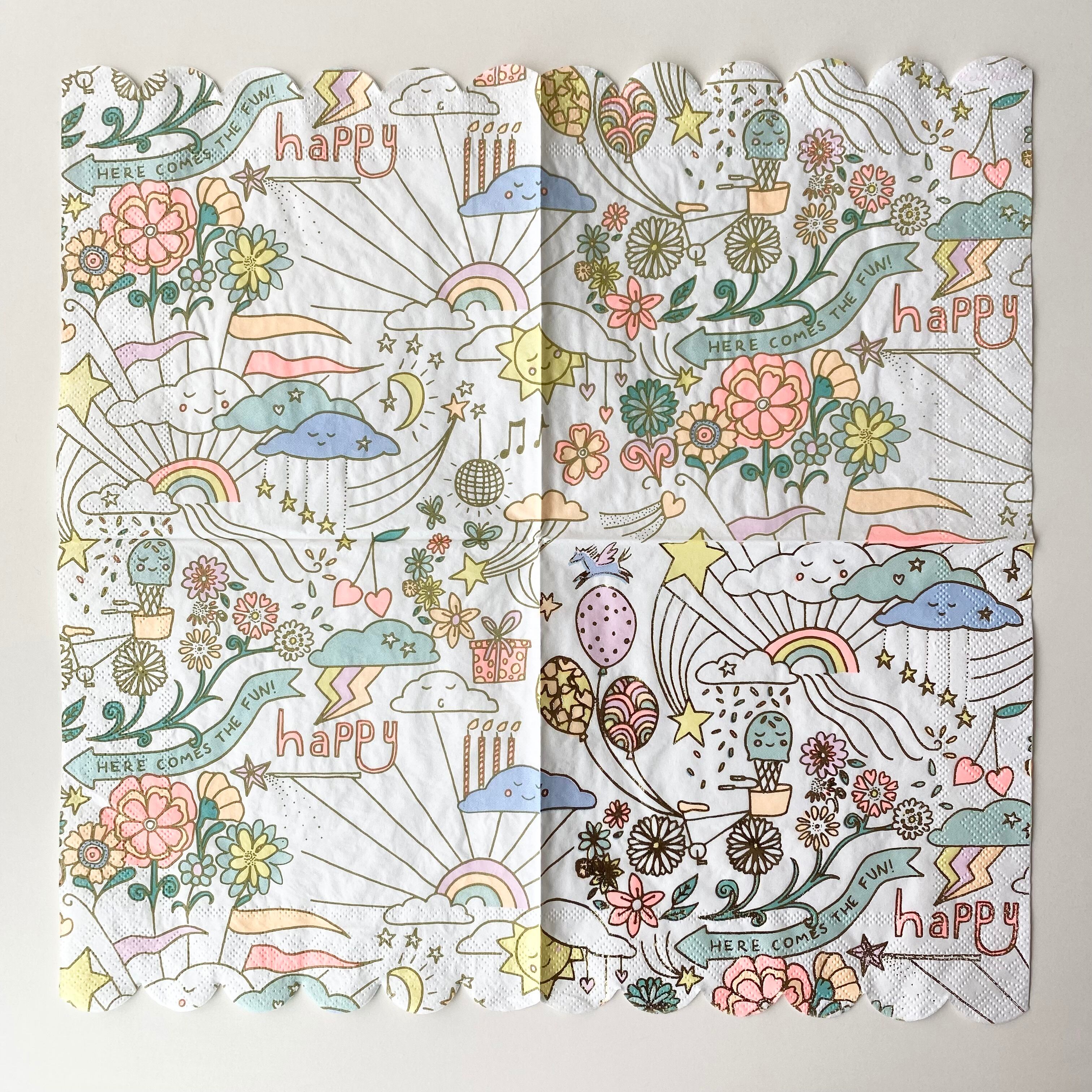 【Meri Meri】バラ売り1枚 ランチサイズ ペーパーナプキン Happy Doodle ホワイト