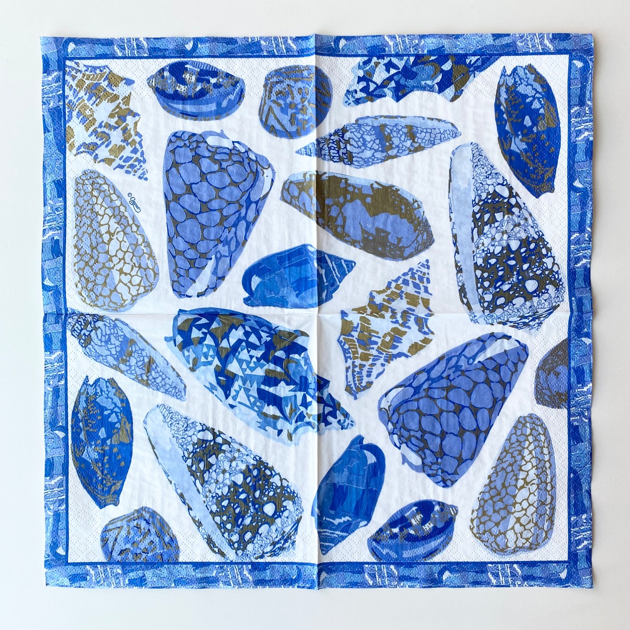 【Caspari】バラ売り1枚 ランチサイズ ペーパーナプキン Coquillage Blue ブルー