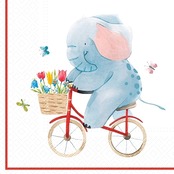 【PAW】バラ売り2枚 ランチサイズ ペーパーナプキン Elephant on Bike ホワイト