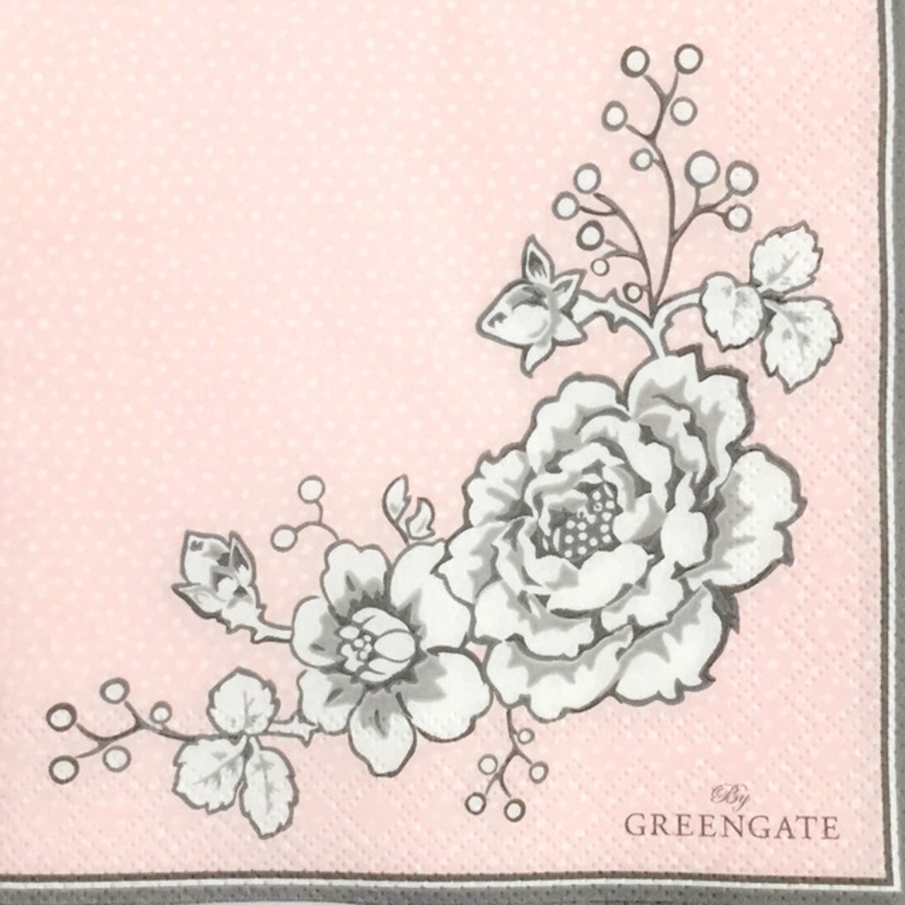 北欧【GreenGate】バラ売り1枚 カクテルサイズ ペーパーナプキン ELLA ペールピンク×グレー
