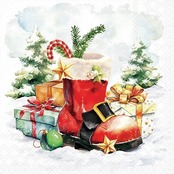 2024秋冬【Ambiente】バラ売り2枚 ランチサイズ ペーパーナプキン Santas boot ホワイト