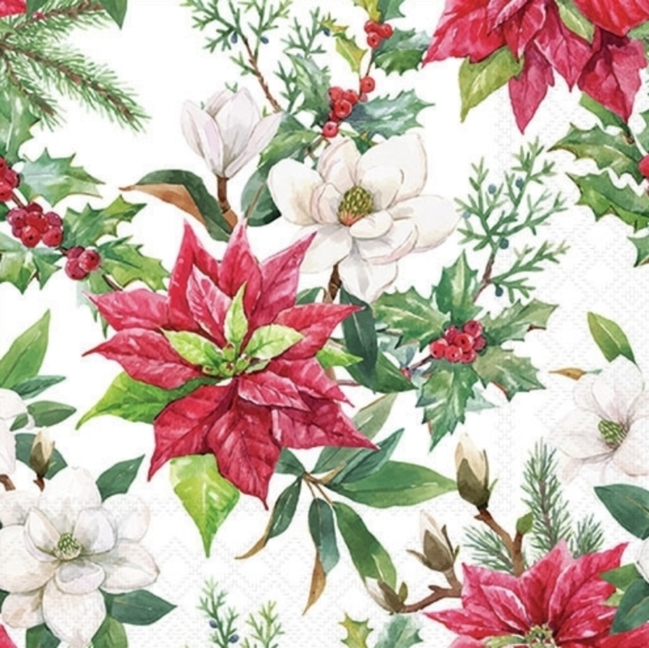 2024秋冬【Ambiente】バラ売り2枚 ランチサイズ ペーパーナプキン Christmas florals ホワイト