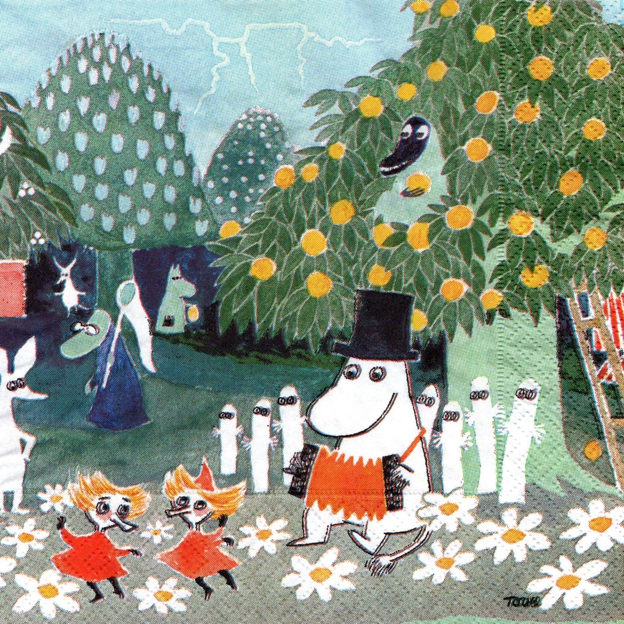 スウェーデン製【ムーミン】バラ売り1枚 ランチサイズ ペーパーナプキン TROLLKARLENS HATT マルチカラー
