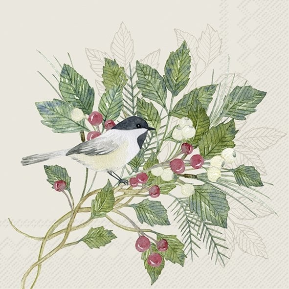【IHR】バラ売り2枚 カクテルサイズ ペーパーナプキン CHRISTMAS JOY クリーム