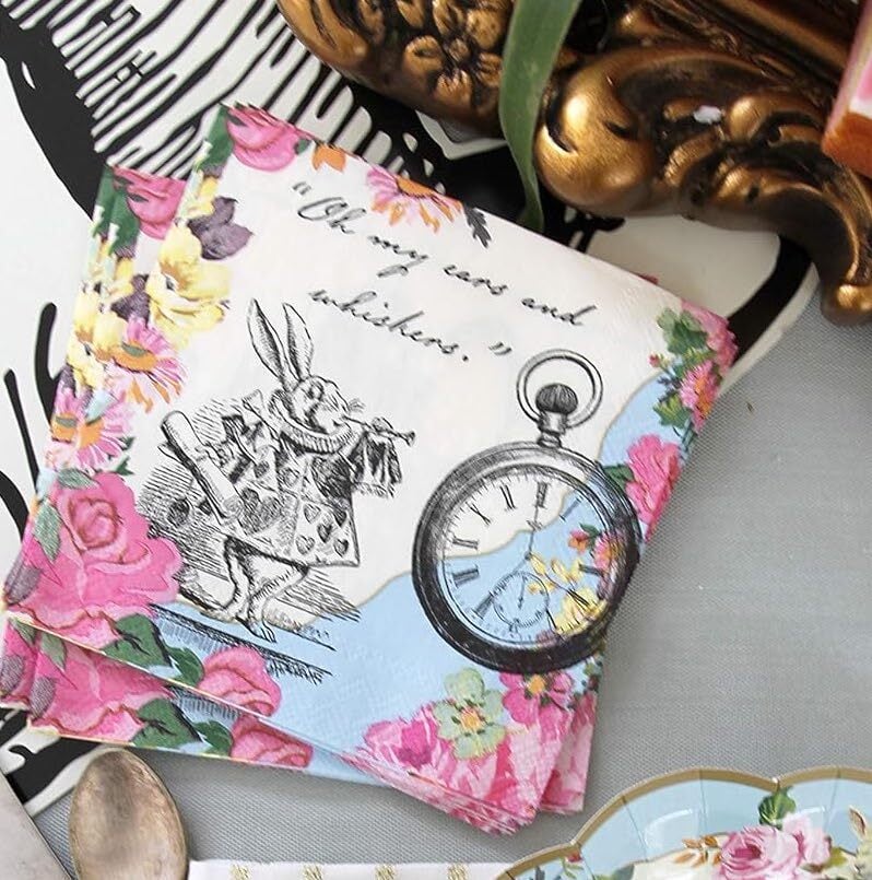 【Talking Tables】バラ売り1枚 カクテルサイズ ペーパーナプキン TRULY ALICE ホワイト