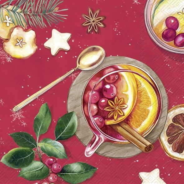 【IHR】バラ売り2枚 カクテルサイズ ペーパーナプキン MULLED WINE レッド