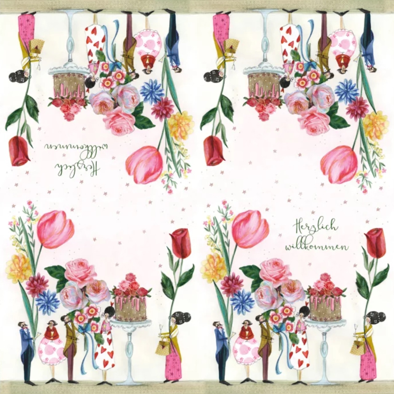 【Gratz Verlag】バラ売り2枚 ランチサイズ ペーパーナプキン Blumenparadies クリーム