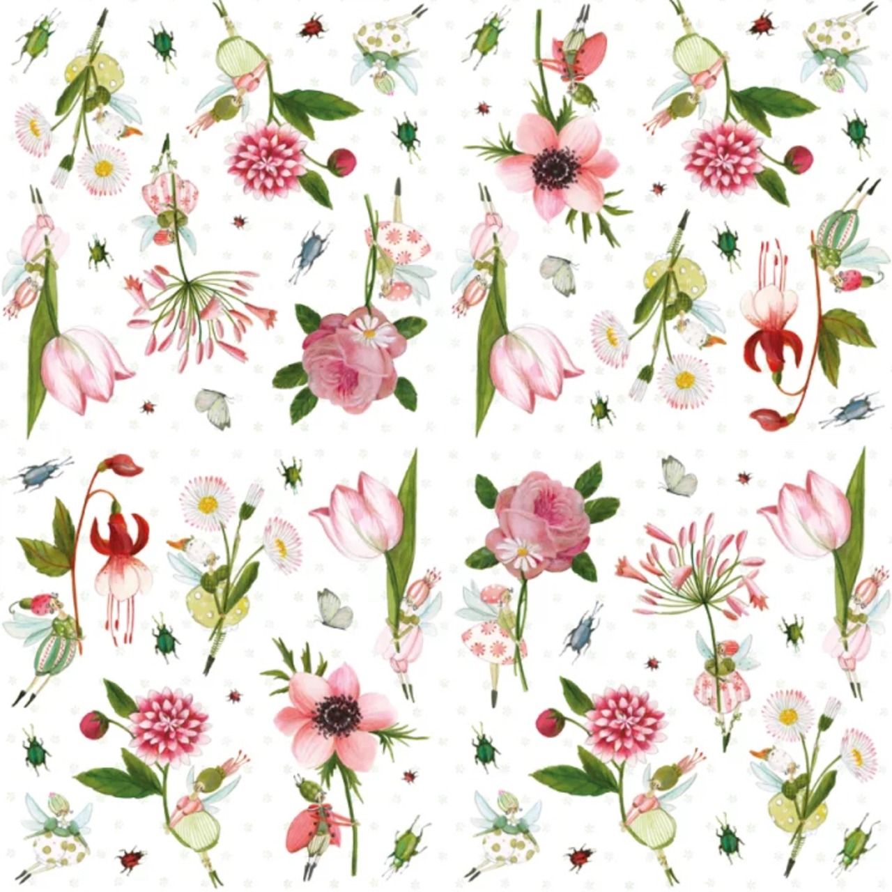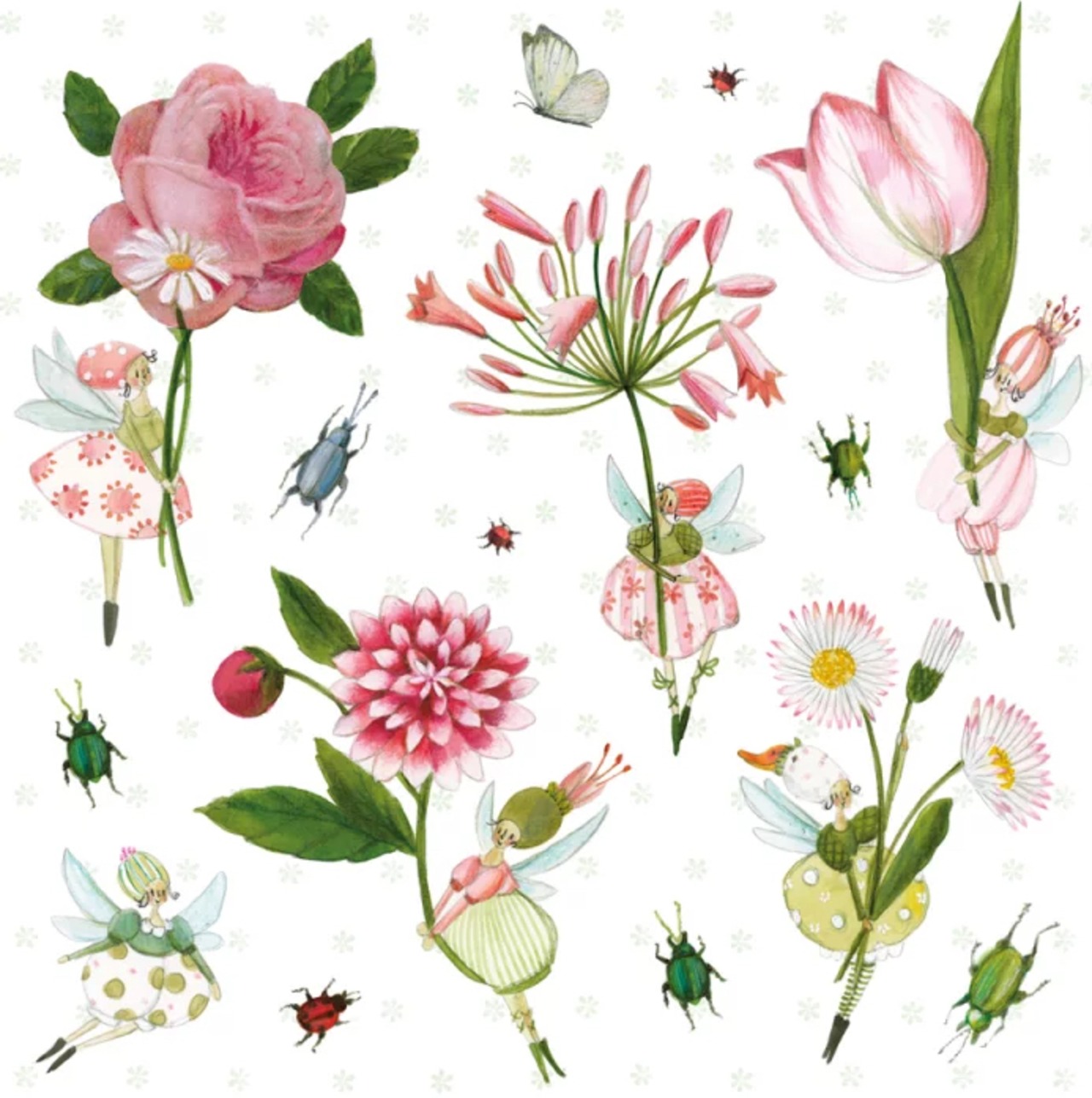 【Gratz Verlag】バラ売り2枚 ランチサイズ ペーパーナプキン Blumenelfen ホワイト