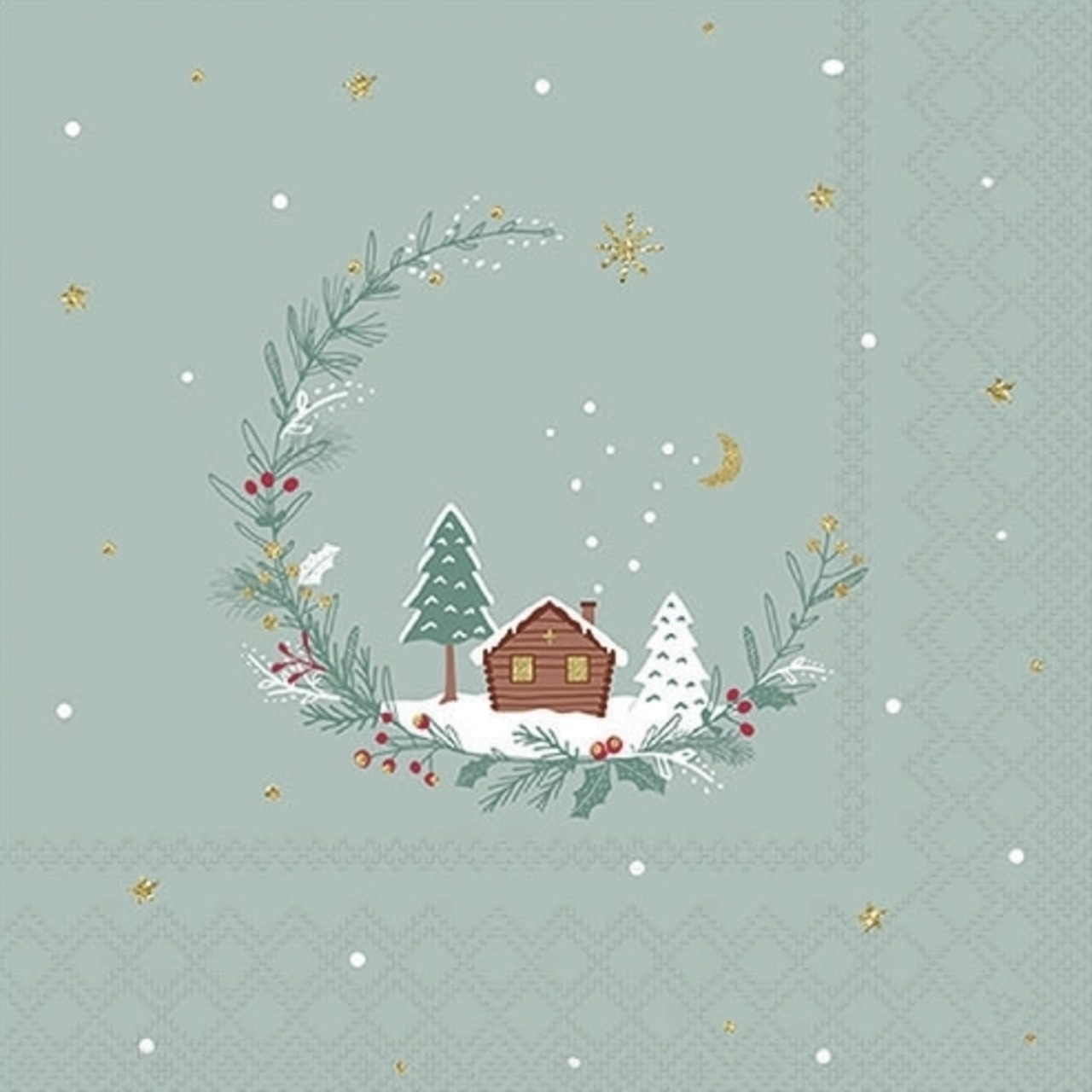 【Ambiente】バラ売り2枚 ランチサイズ ペーパーナプキン Little wood cabin セージ