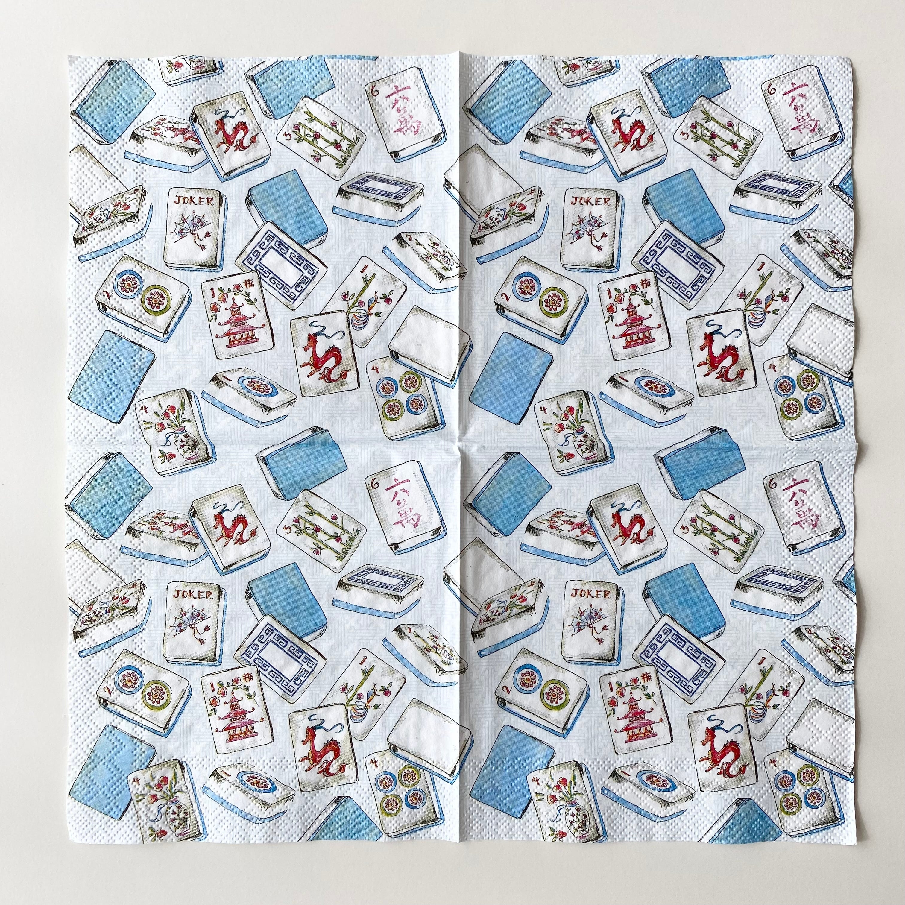 【Rosanne Beck】バラ売り2枚 カクテルサイズ ペーパーナプキン Mahjong ブルー