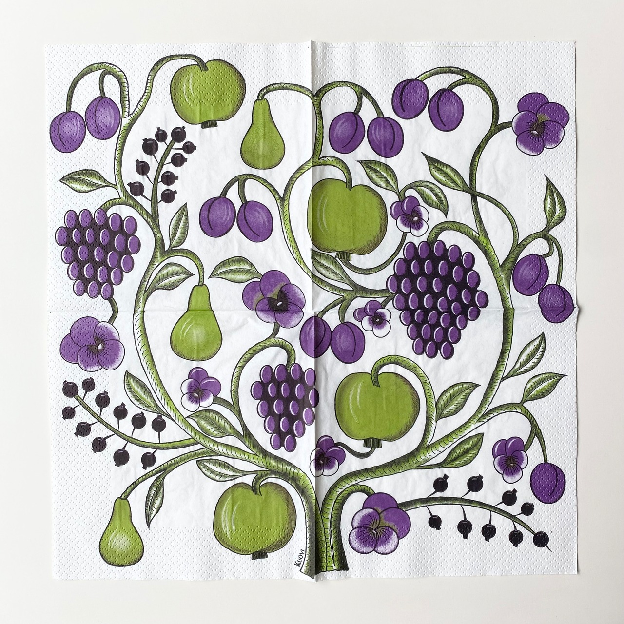 北欧【Kuovi】バラ売り1枚 カクテルサイズ ペーパーナプキン ORCHARD パープル フィンランド製 ARABIA PARATIISI