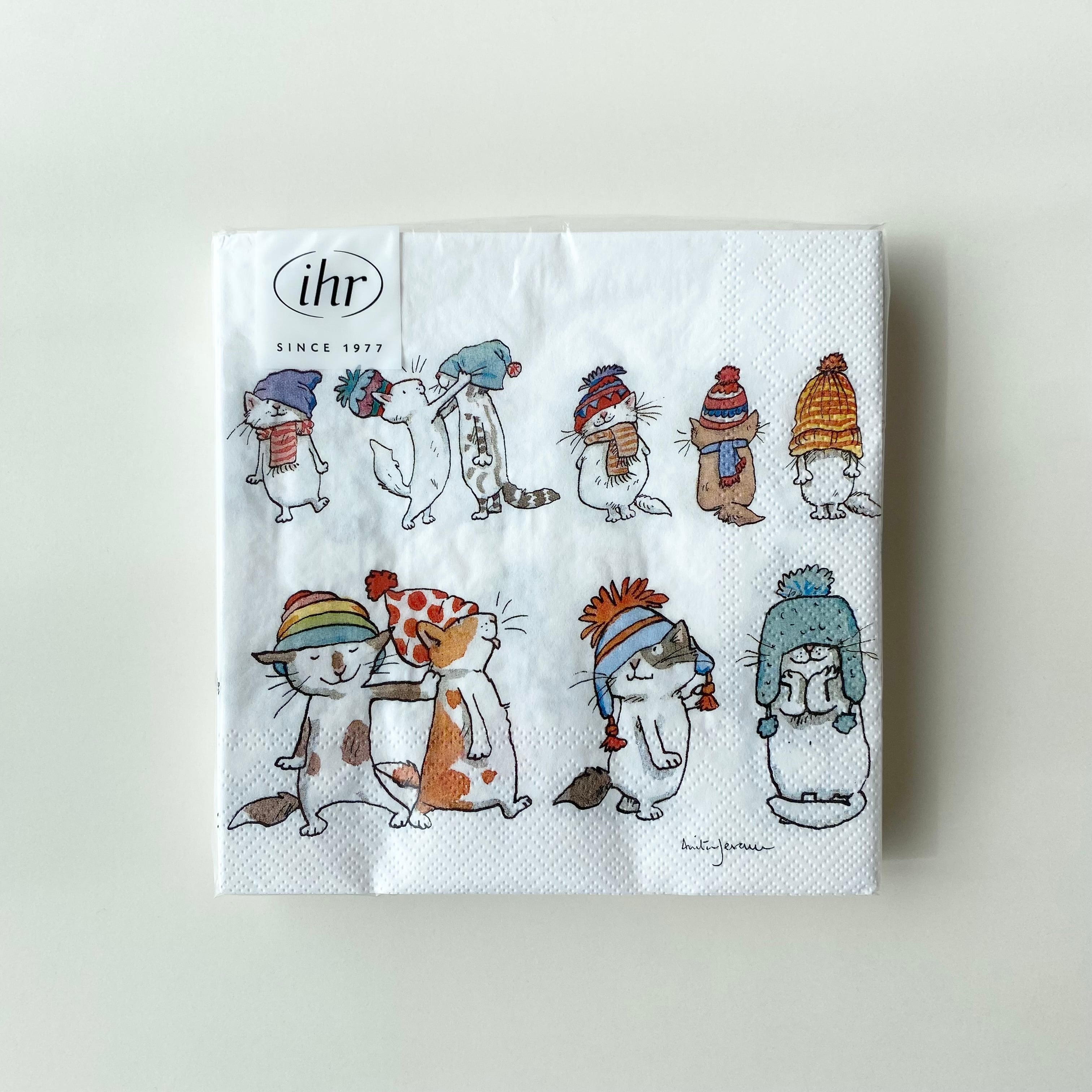 予約商品|10月下旬入荷【IHR】ランチサイズ ペーパーナプキン CATS WITH HATS ホワイト Anita Jeram 20枚入り