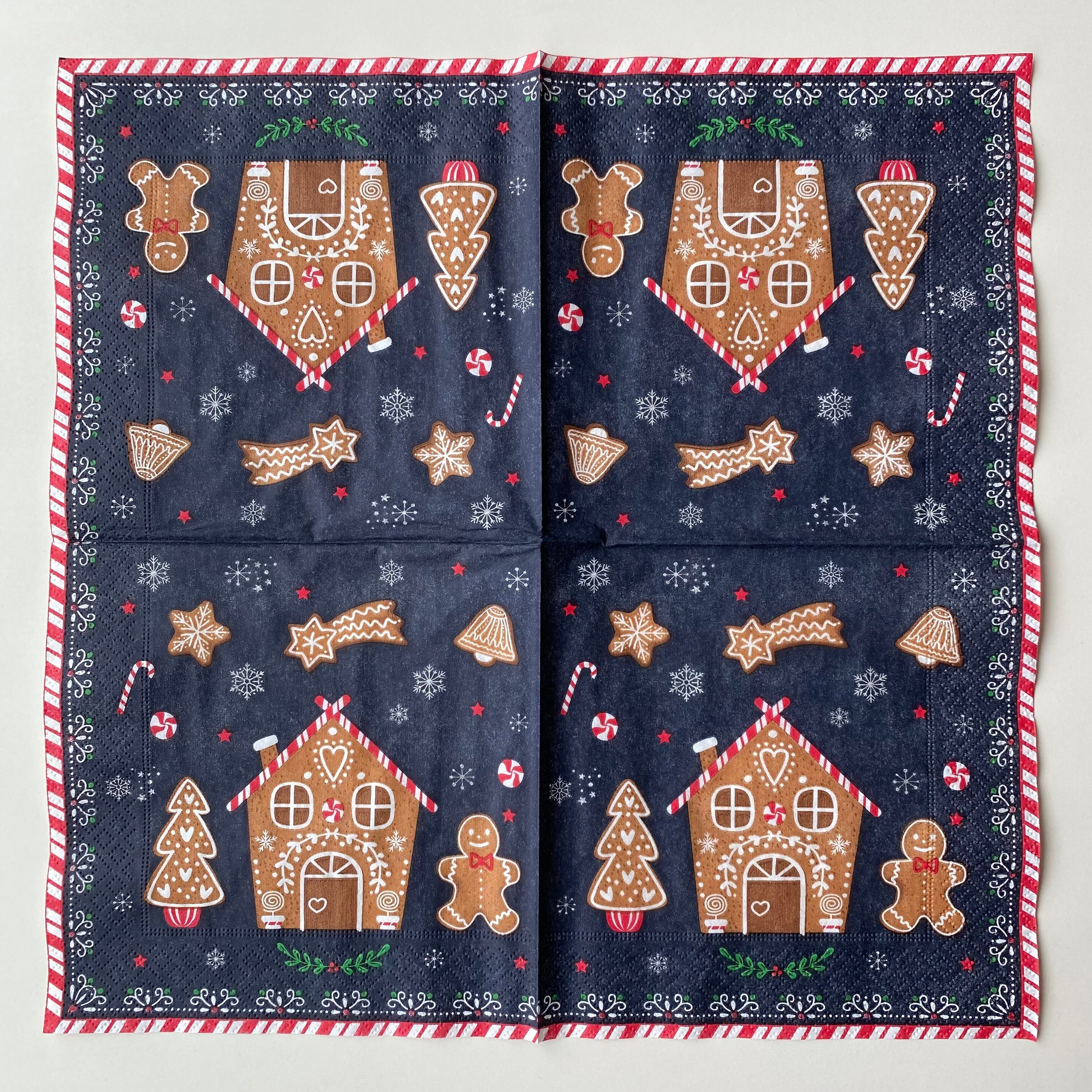 【Easy Life】バラ売り2枚 ランチサイズ ペーパーナプキン GINGERBREAD ダークブルーxレッド
