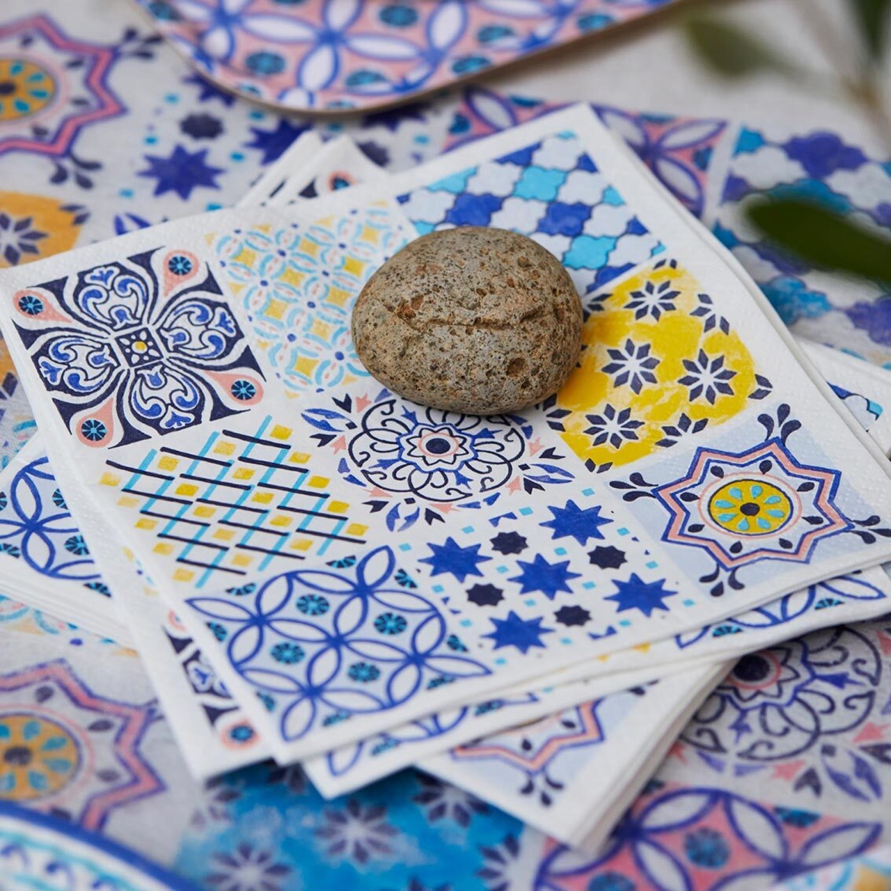 【Talking Tables】バラ売り1枚 ランチサイズ ペーパーナプキン Moroccan Souk Tile Blue ホワイト モロッカンタイル